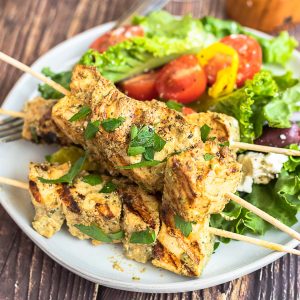 Grilled Halibut Skewers With Garlic and Lemon (Easy Fish Kebab Recipe)
