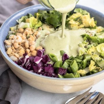 Pardon me while I worship at the altar of the green goddess. I mean, what's not to like about a salad dressing that's chock-full of flavor and nutrition? I can put this dairy-free green goddess dressing on just about any salad and know I will enjoy it. And there are so many different ways to use it, once you experience it you won't be able to stop making it. I especially like to use it to create a satisfying salad for lunch.